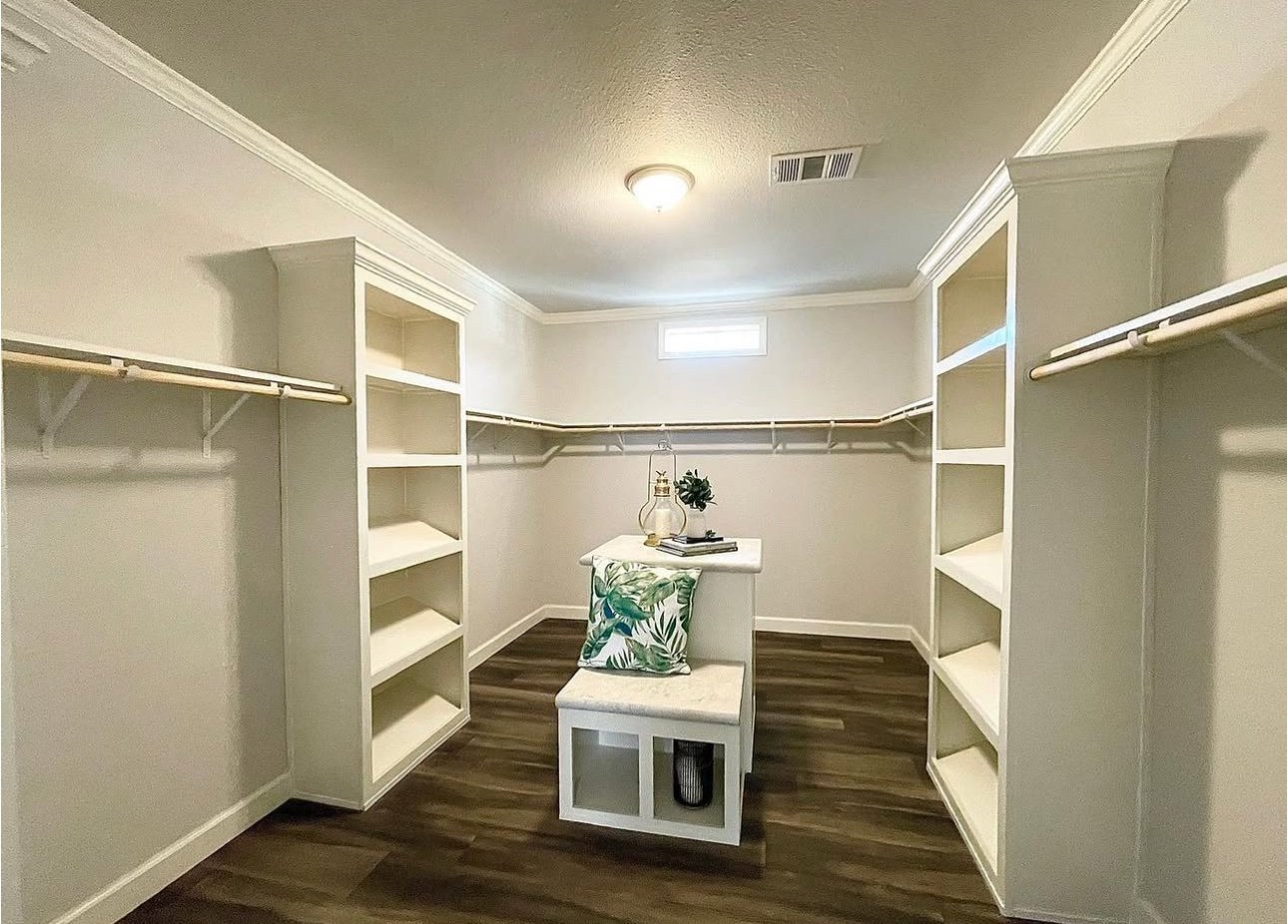 Worrying about cabinet space will be a thing of the past when you make your way to the kitchen, because we packed it out with cabinets galore. In the master closet, we have put a built in island that not only can store things but can also be used as seating for when you are trying to put on your shoes. Then on both sides of the closet we have placed floor to ceiling shoe cubbies and an additional large cabinet in the corner!