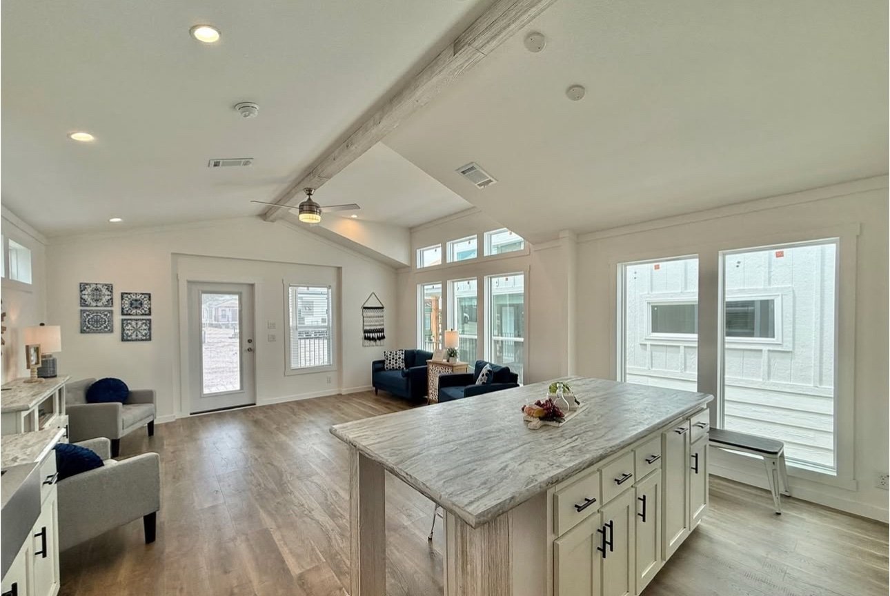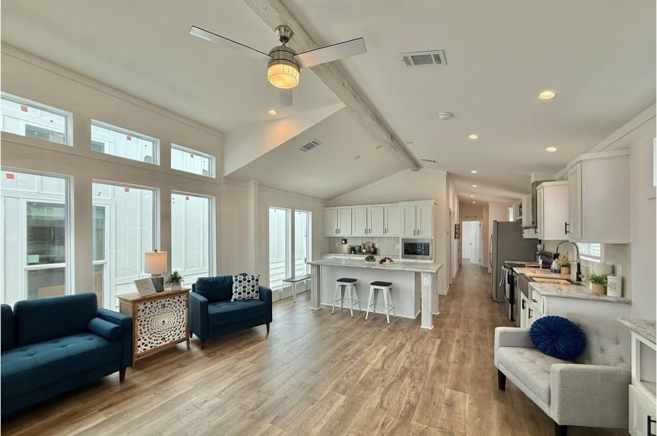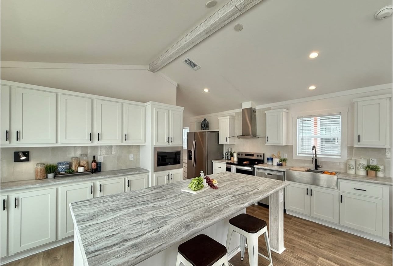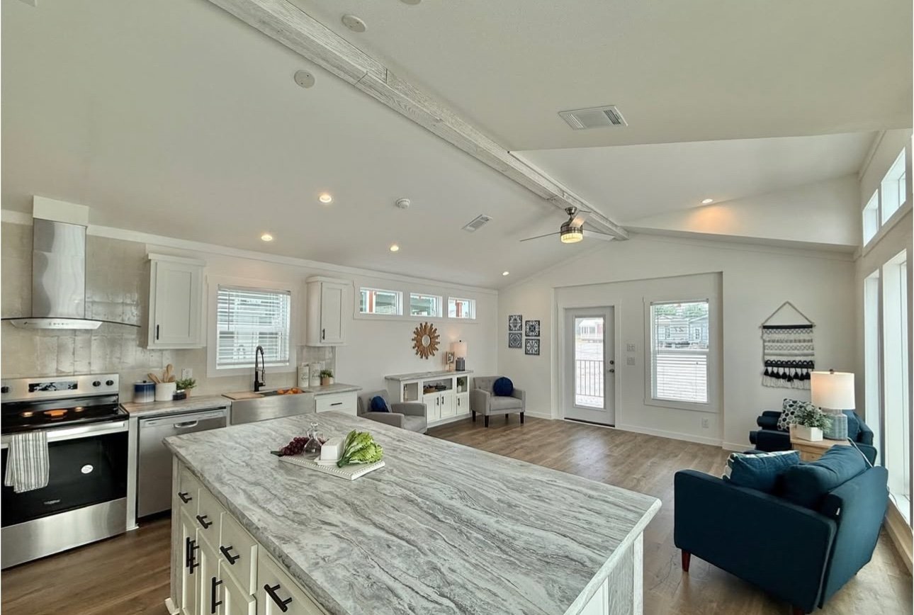 a/c and heat system installed, one set of temporary, wooden steps, manufactures warranty, plus an extended warranty.