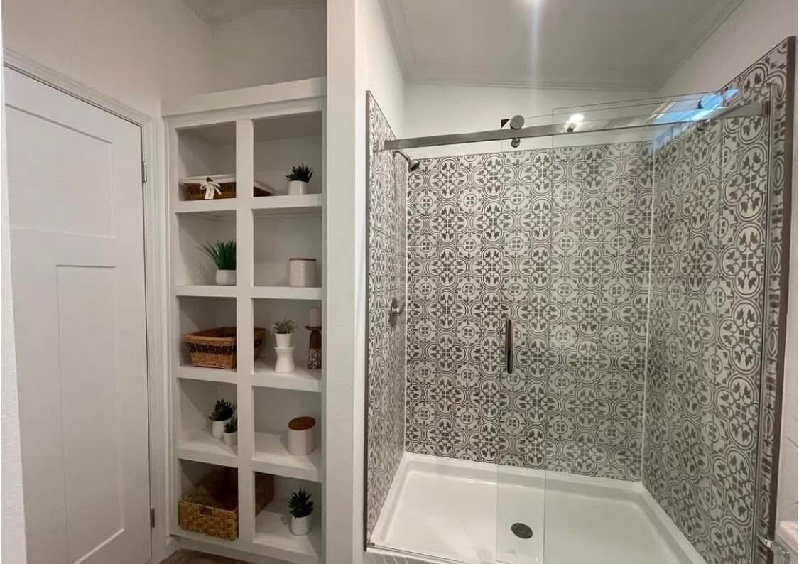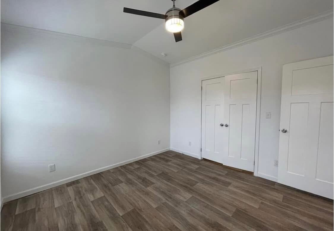 2bed/1bath 819 sq ft single section It’s has a desk area in the hallway Check out the shelve in the bathroom