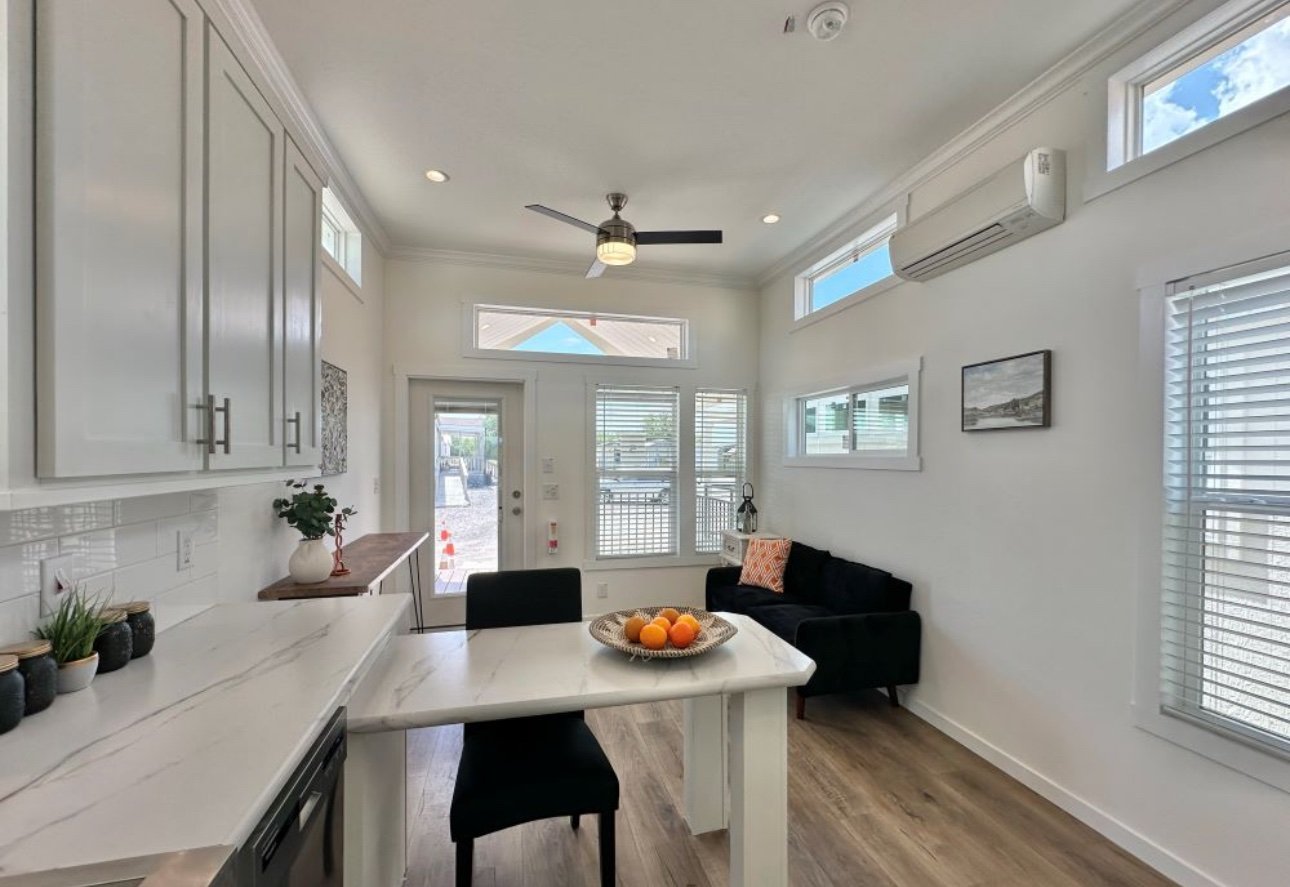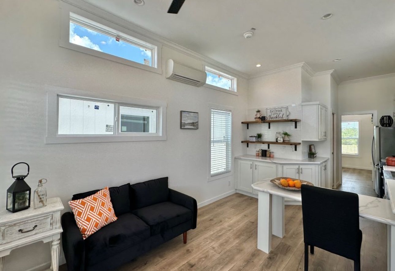 a/c and heat system installed, one set of temporary, wooden steps, manufactures warranty, plus an extended warranty.