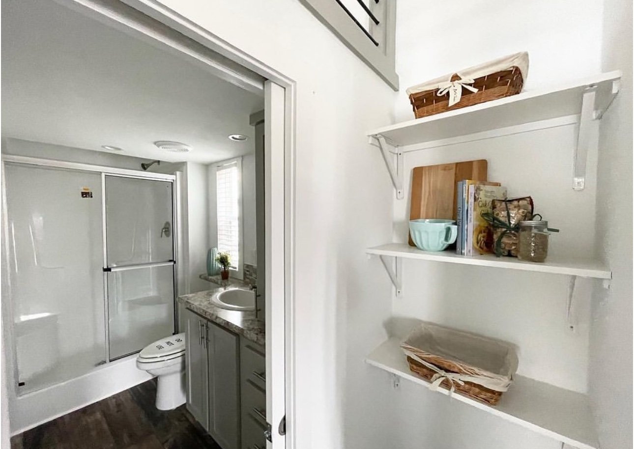 RV park model with a loft fee when you look at the floorplan on the last slide, you’ll notice we chose the second option for the closet in the downstairs bedroom!