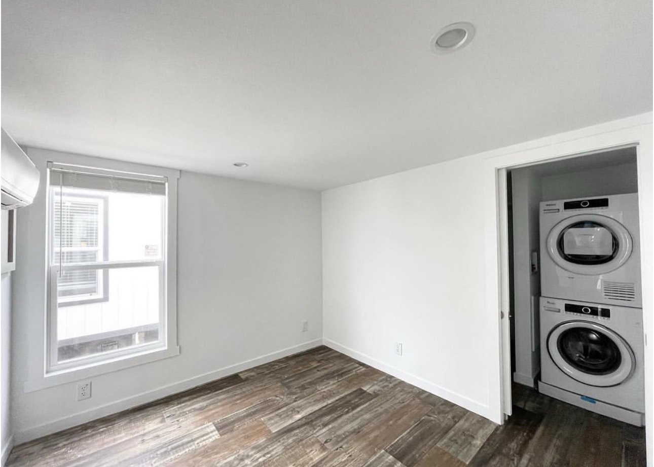 The ductless a/c and heat system installed, one set of temporary, wooden steps, manufactures warranty, plus an extended warranty.