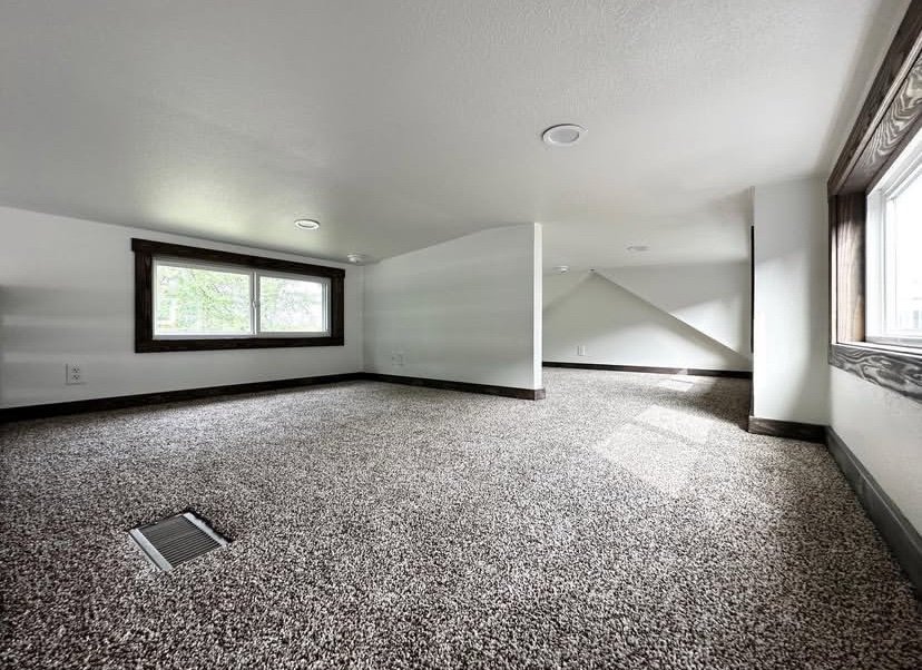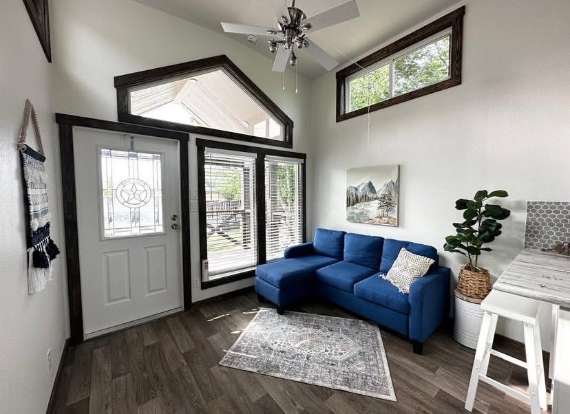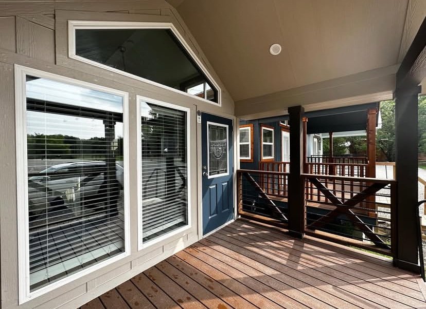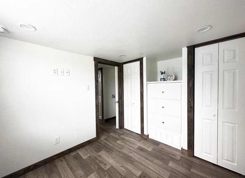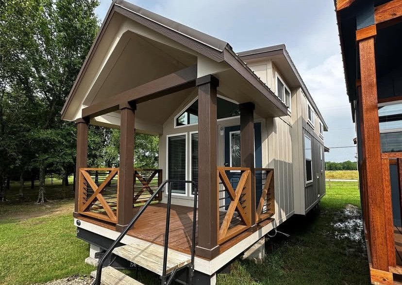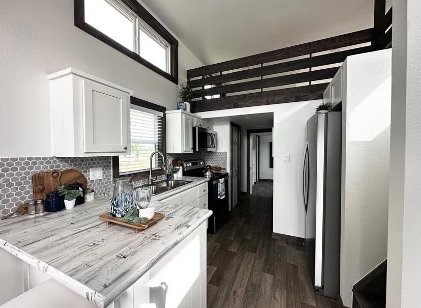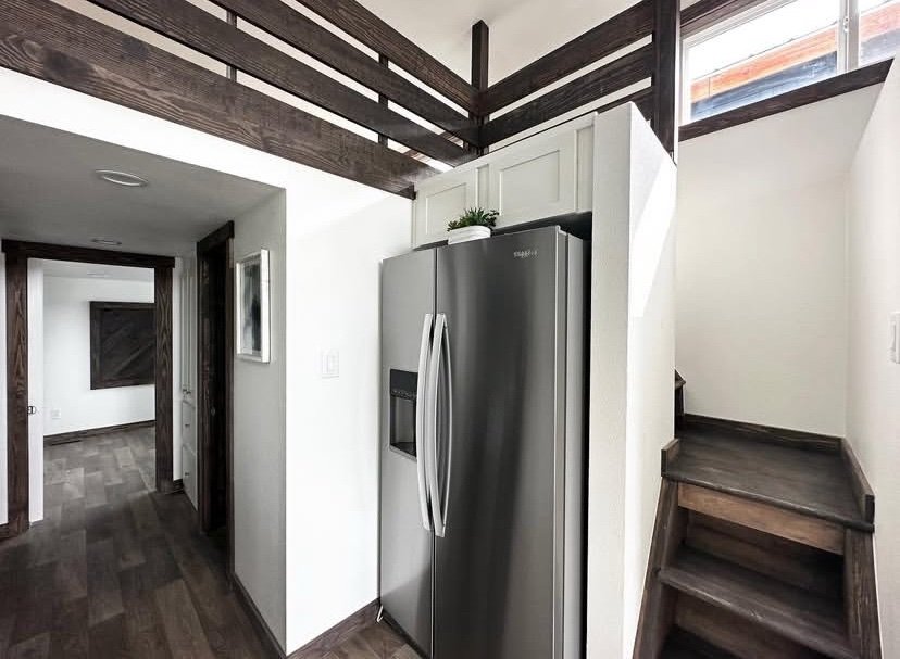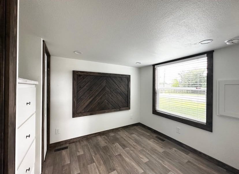 We put in some fun options as well such as the chevron wood queen sized headboard in the bedroom and the slatted loft rails.