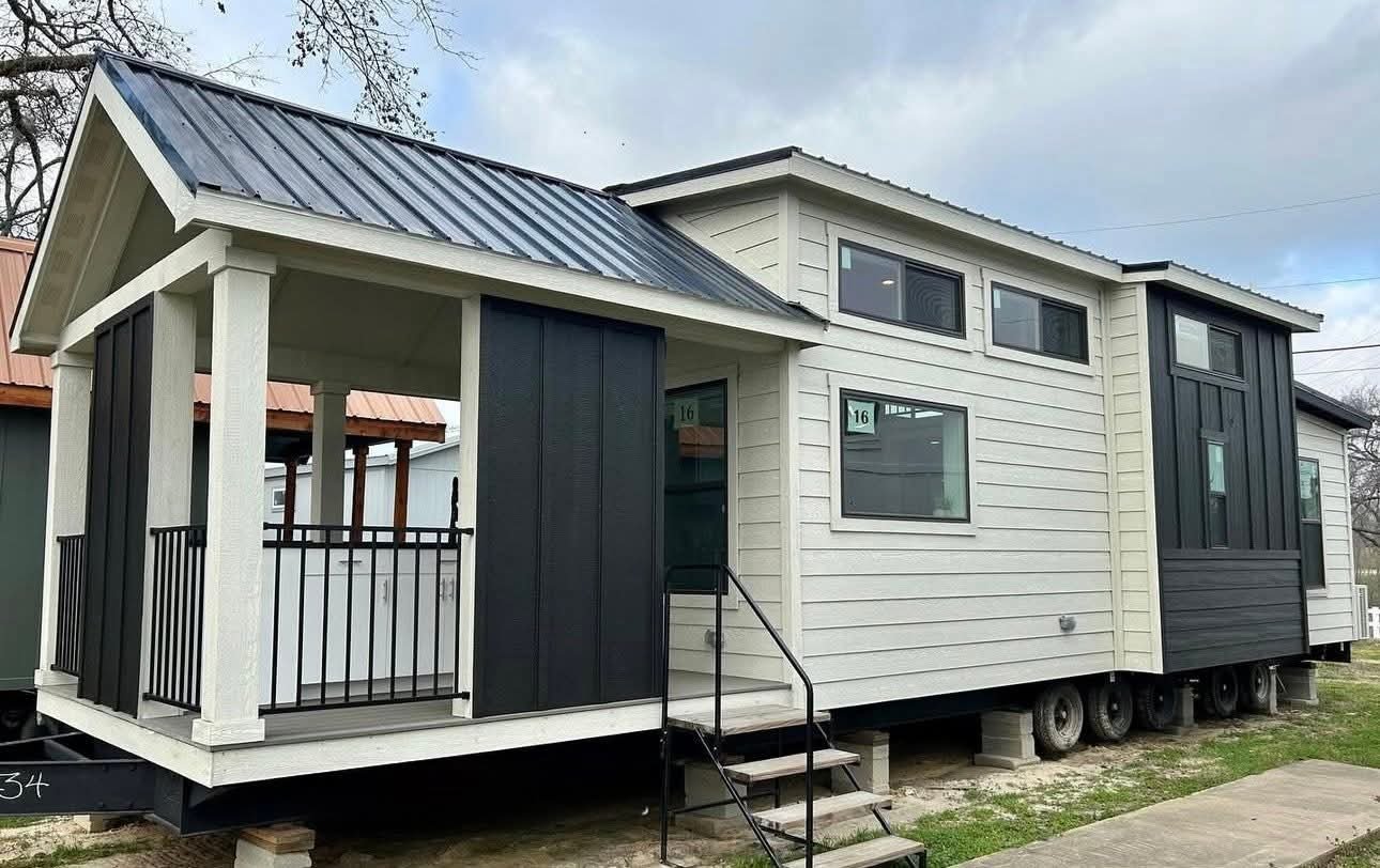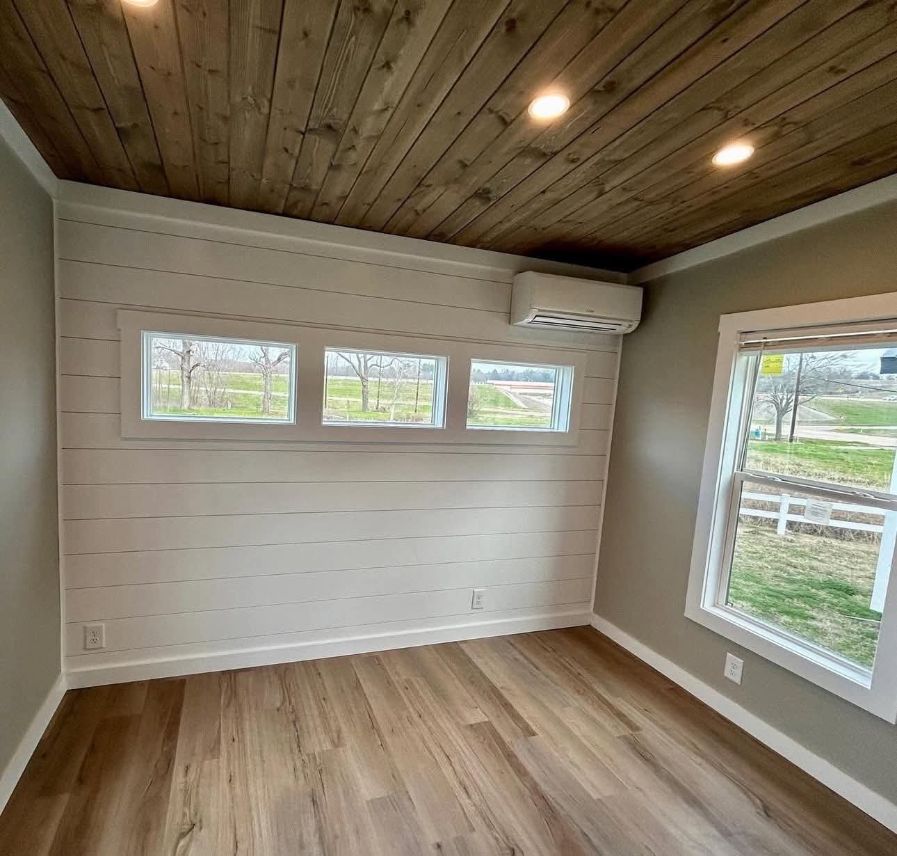 The rear downstairs bedroom is large enough for an RV King bed or full Queen.