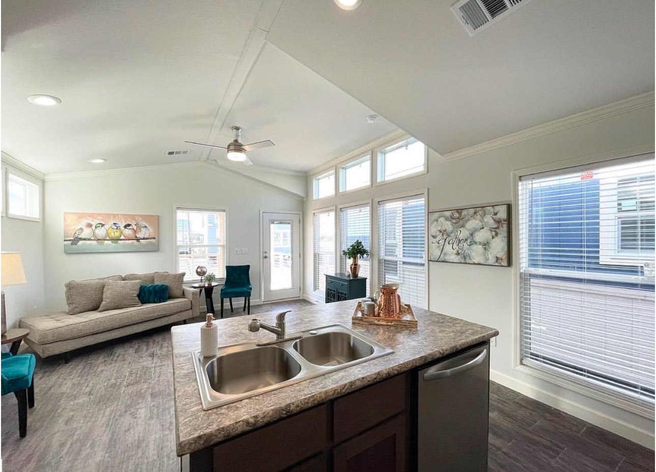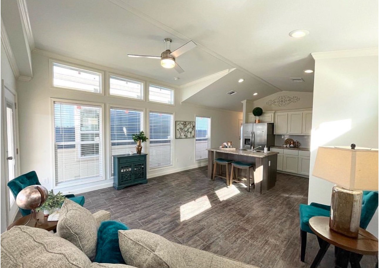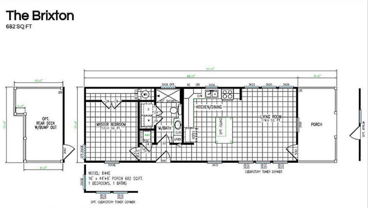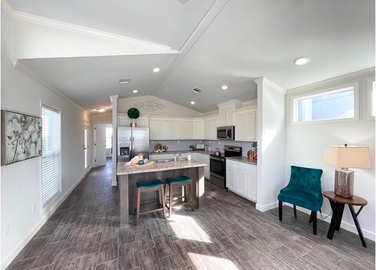 This floor plan gives you a large kitchen, island with the sink in it, two clerestories, a spacious bathroom with the tile shower and separate laundry closet!