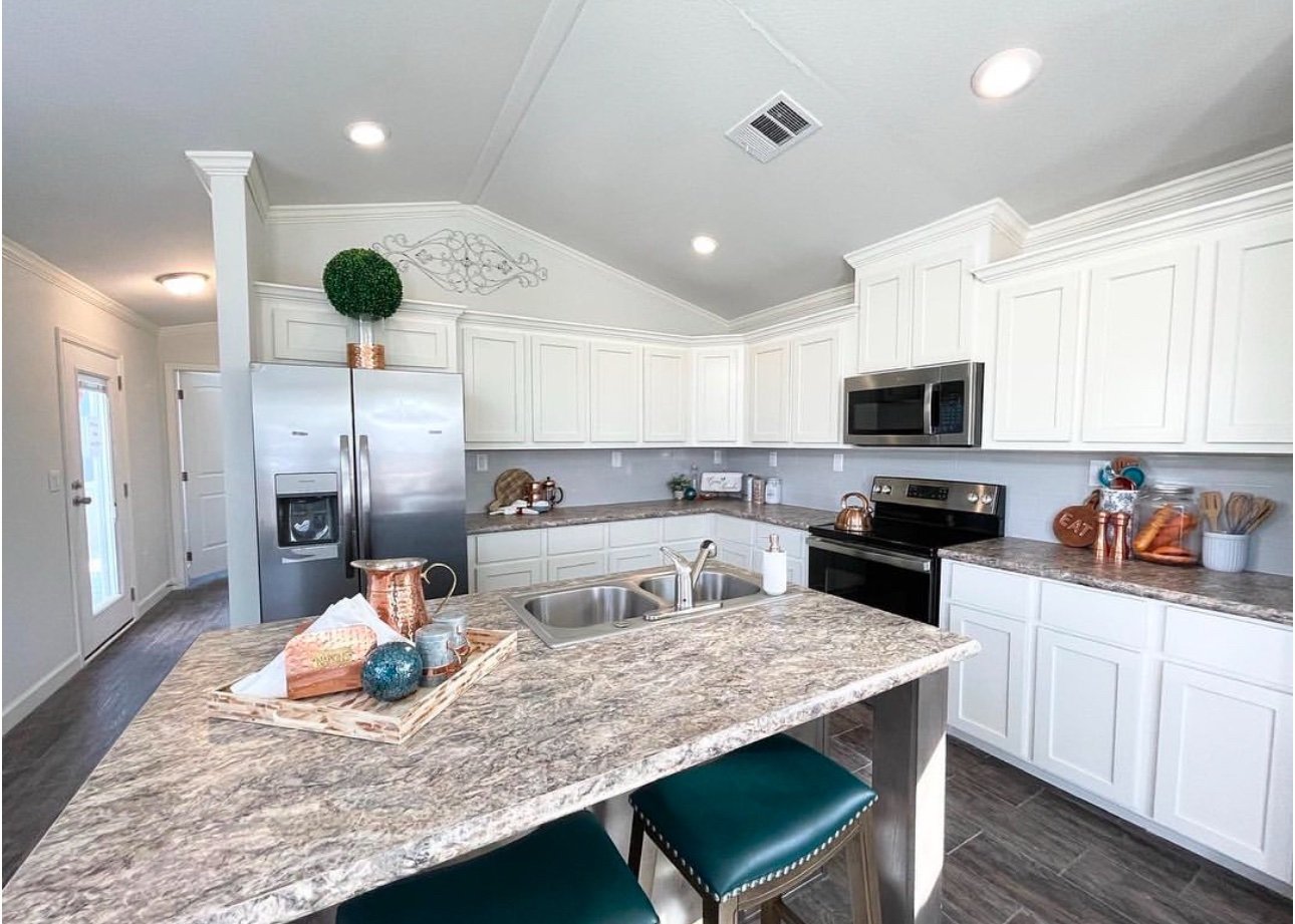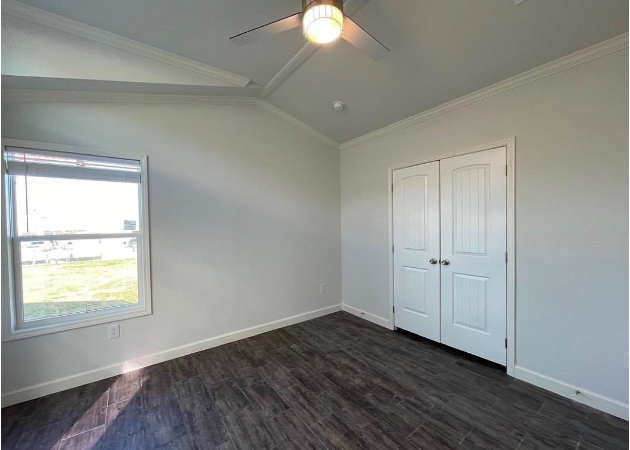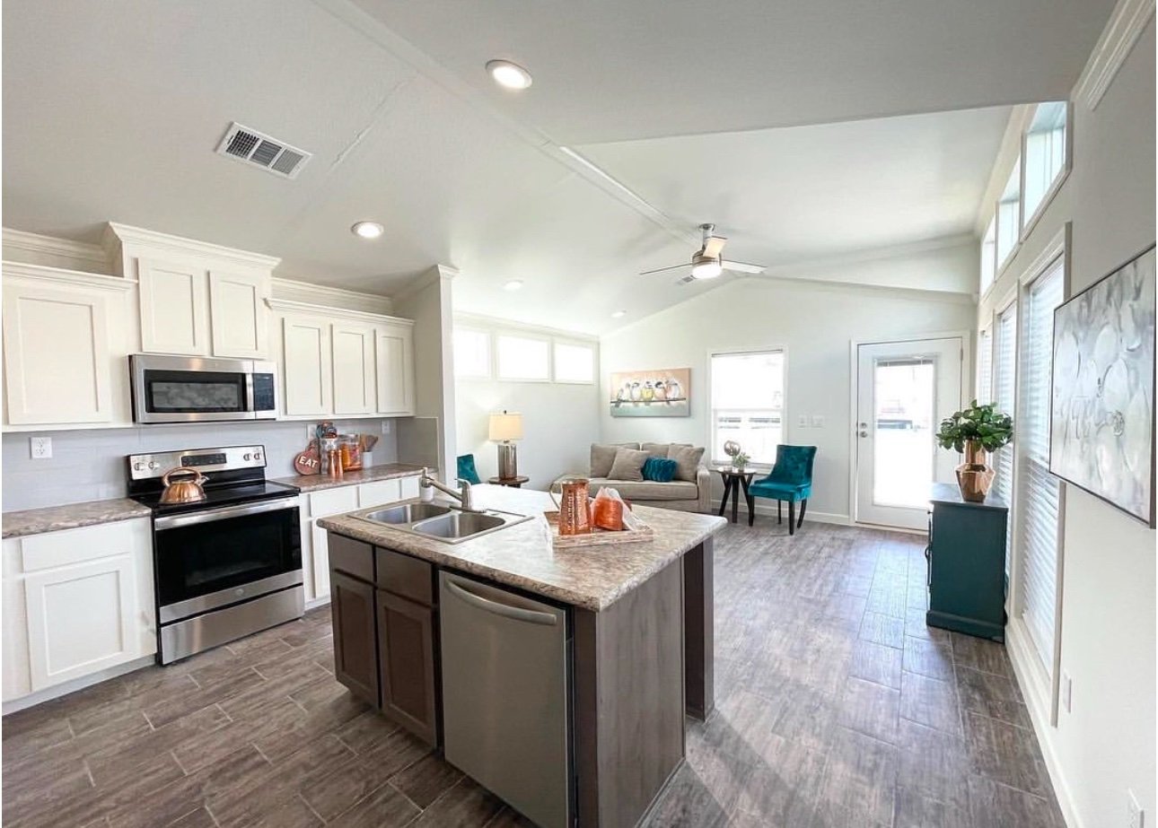 This floor plan gives you a large kitchen, island with the sink in it, two clerestories, a spacious bathroom with the tile shower and separate laundry closet!
