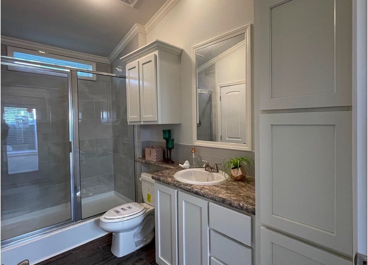 For all our followers that love the tiny homes but want a side by side washer dryer, this Mini Mansion Smart Cottage boasts a unique floorplan with the utility closet inside the bathroom. It’s a great use of space and gives you a spacious feeling in a small home.