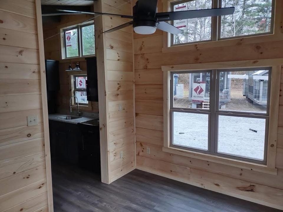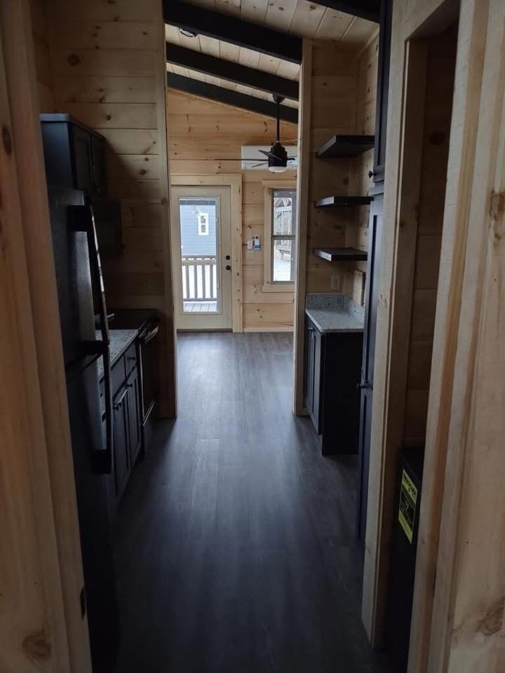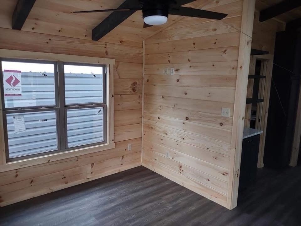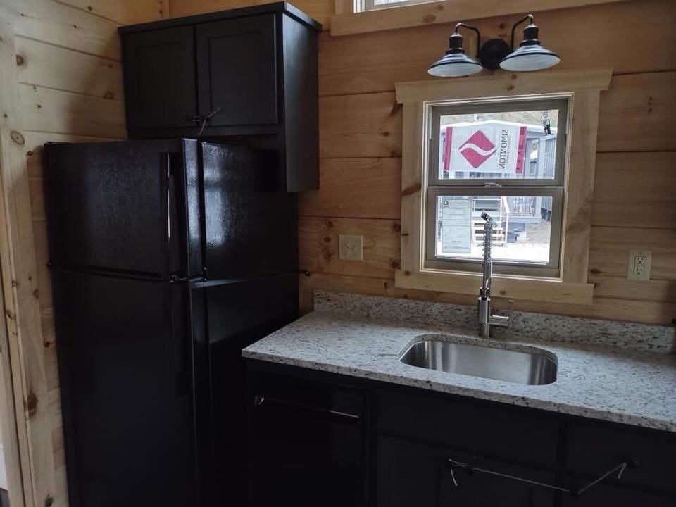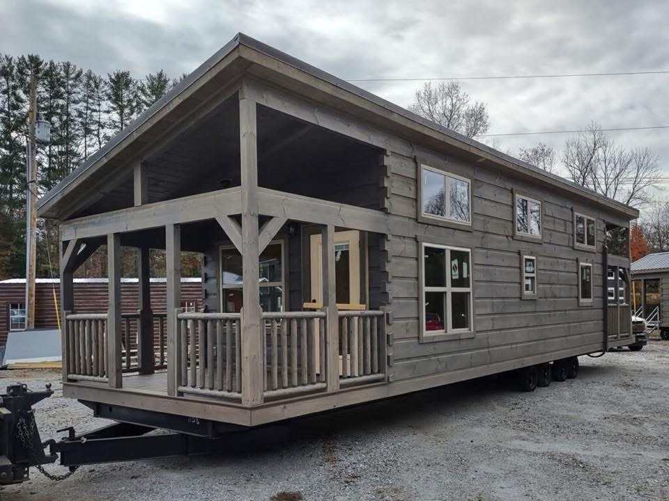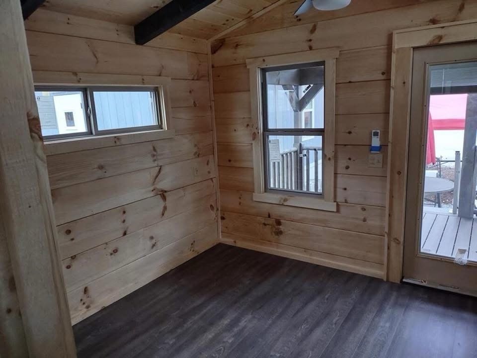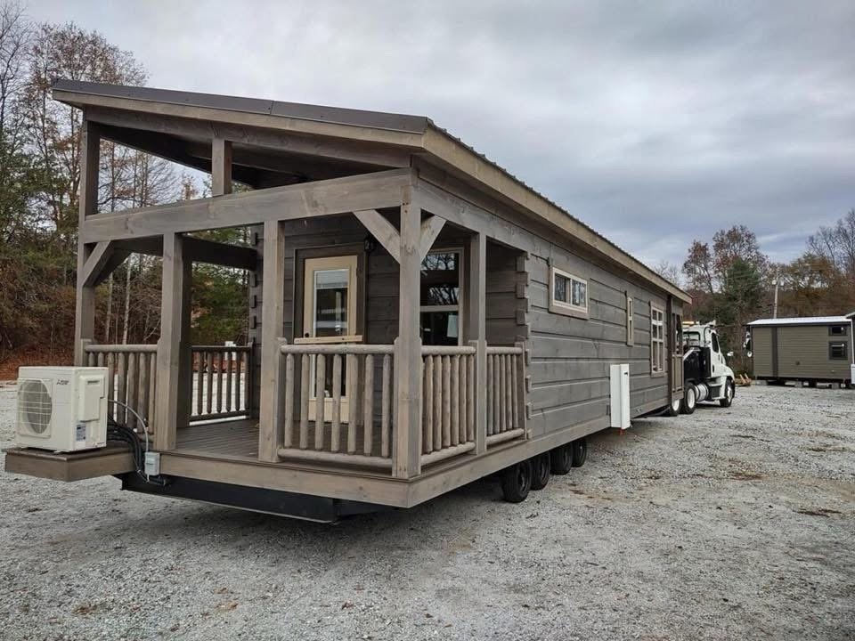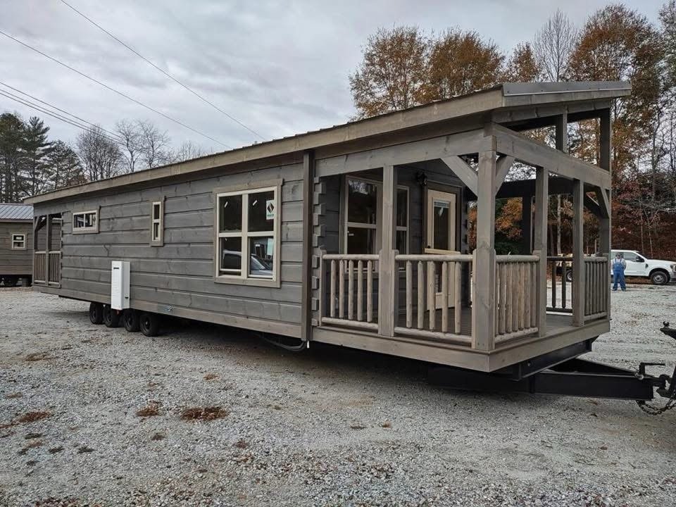 This Nestling model tiny home available for $28,000 with $1,500 downpayment delivery to all states, is a 500 square feet, 12′ * 42′, 1 bedroom, 1 bath RV park model that comfortably sleeps 4 people. Has front and back porch