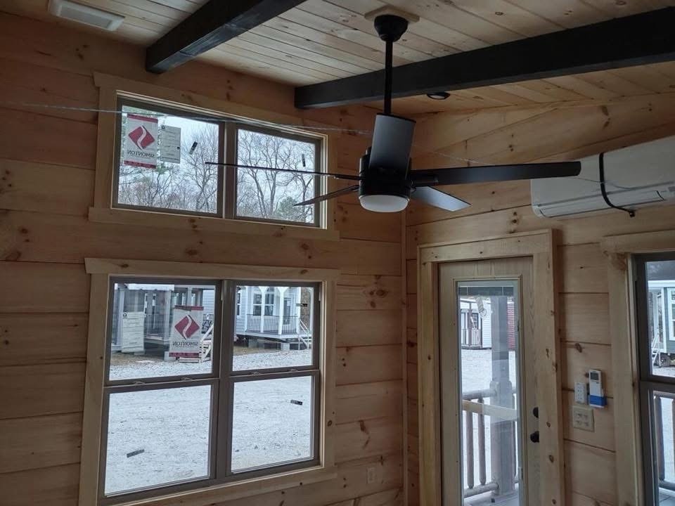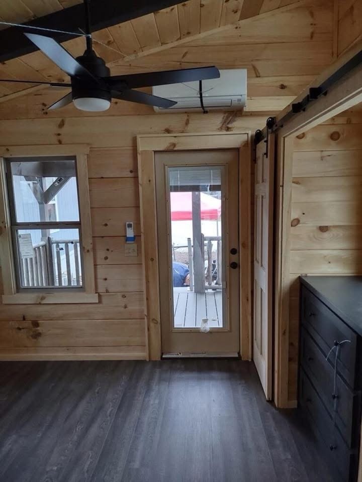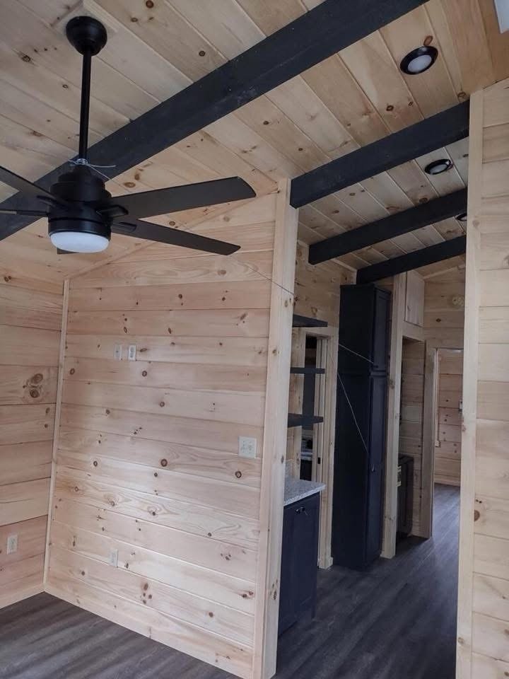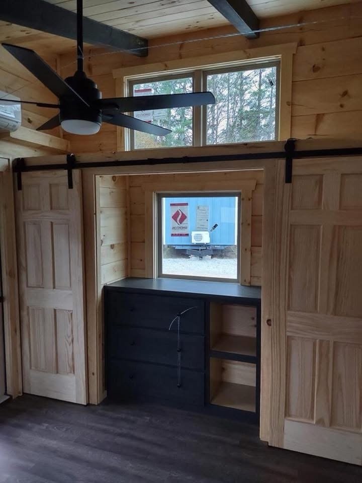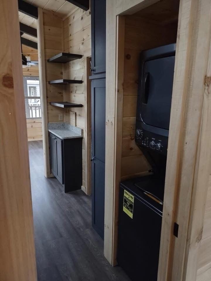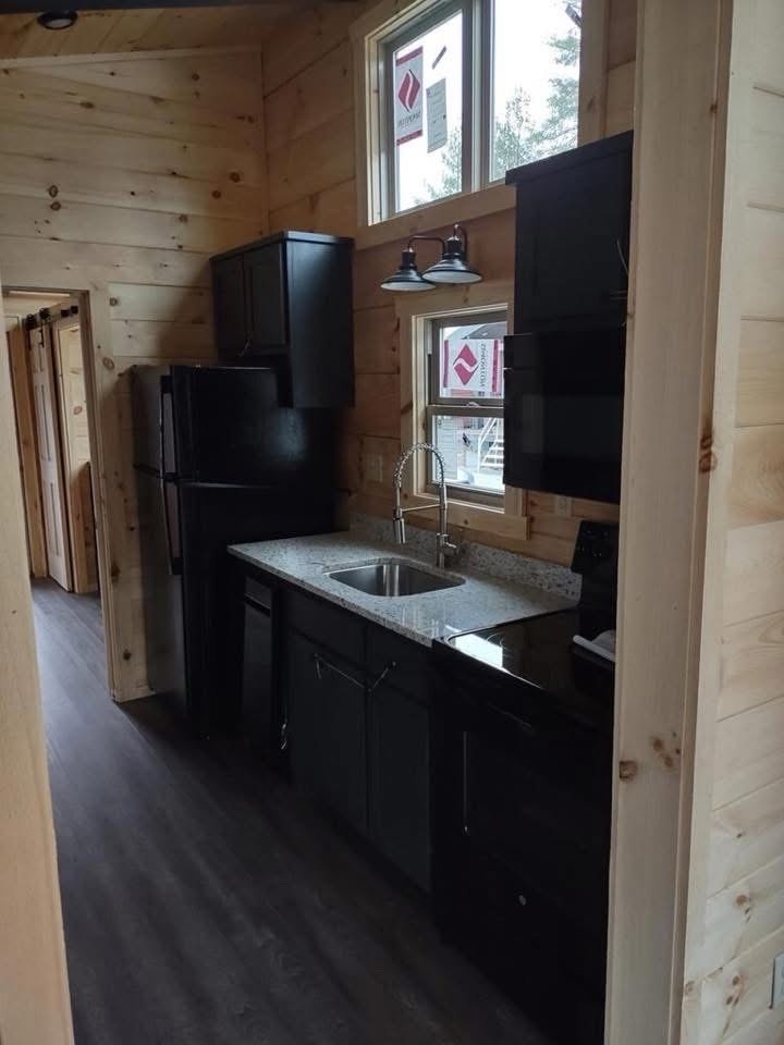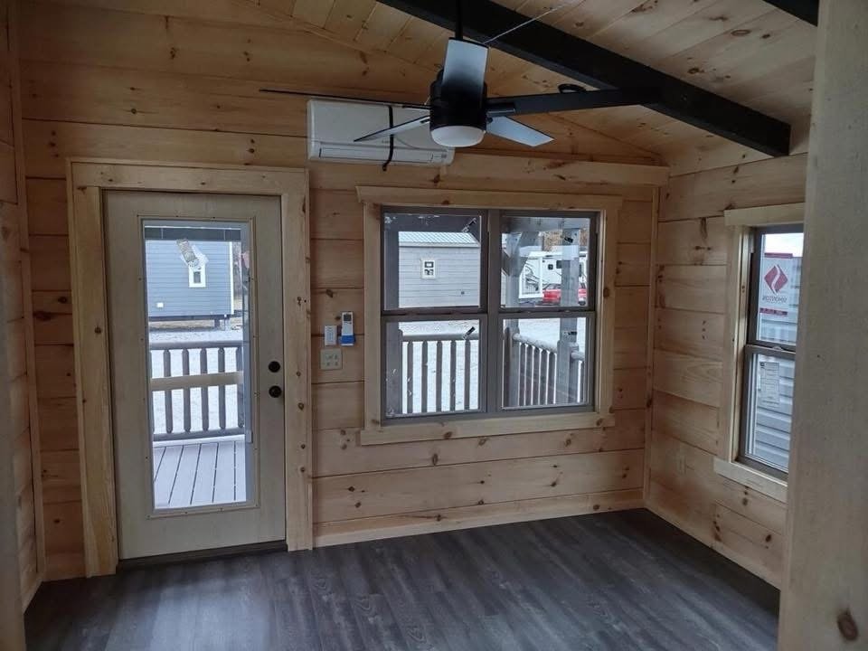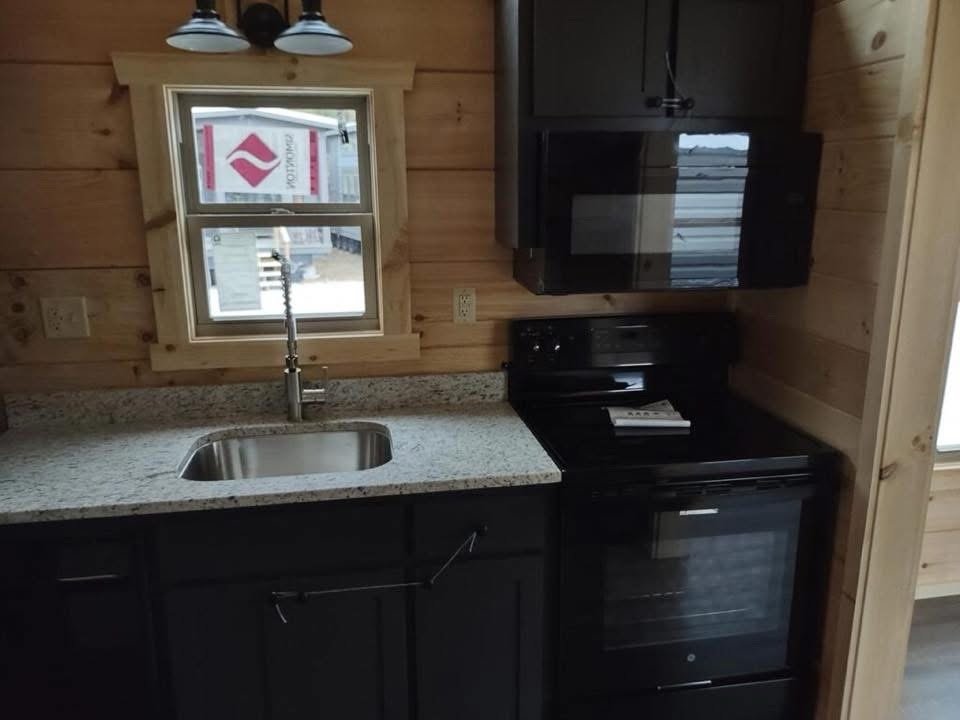 This Nestling model tiny home available for $28,000 with $1,500 downpayment delivery to all states, is a 500 square feet, 12′ * 42′, 1 bedroom, 1 bath RV park model that comfortably sleeps 4 people. Has front and back porch