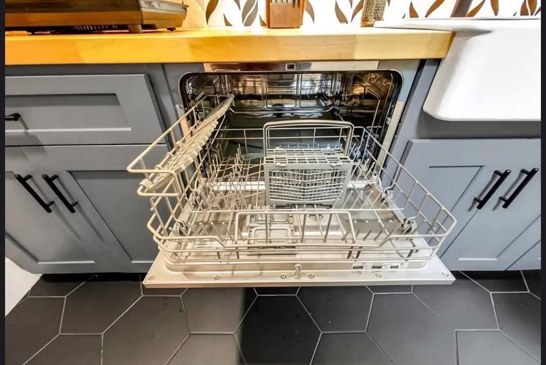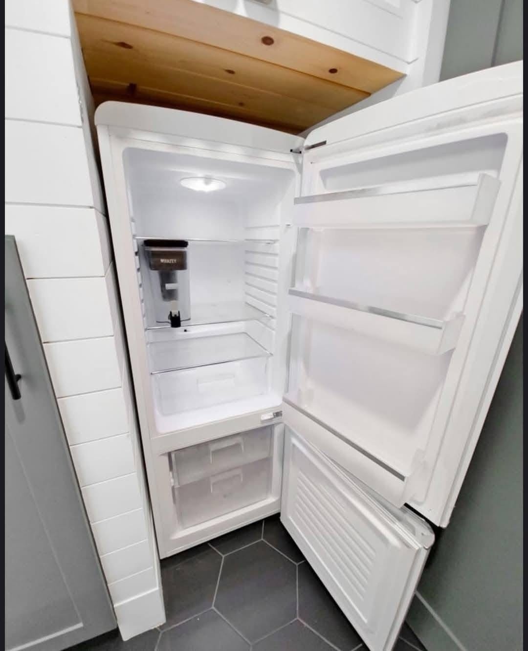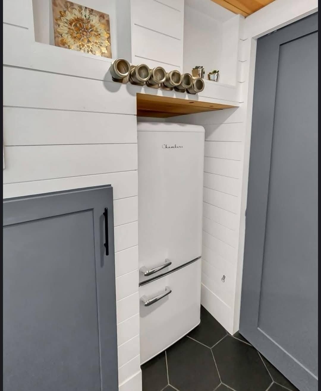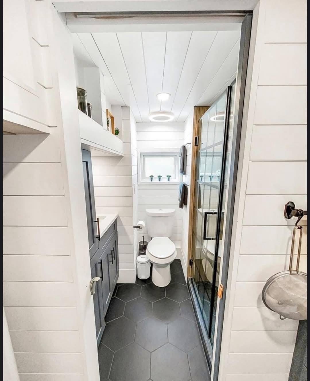 Designed by an architect & tiny home enthusiast, this beautiful tiny home on wheels maximizes every inch of space! Goldstein Tiny Home Details: Modern Exterior White Shiplap Walls & beautiful Fixtures throughout the Interior Entry is a separate Mud Room/Laundry Room with Tile Back-Splash Living Room features a Convertible Sleeper Sofa & wall-mounted TV Walnut Butcher Block Counter Tops Farmhouse Kitchen Sink Apartment Size Refrigerator Drawer Dishwasher Stow-away Cooktop Built-in Microwave & Vent Hood Storage Staircase Stand-up Loft Bedroom Full-Size, Built-In Wardrobe & matching Night Stand Queen Size Bed Platform Wall-mounted TV in the bedroom Bathroom features a beautiful Tile Floor Residential Flush Toilet 3’x4′ Shower with Tile Surround & Glass Doors Beautiful Walnut Trim & Walnut Open Shelving throughout the home Mitsubishi Mini-split AC & Heat Pump Wood framing High-quality Trailer built specifically for a Tiny Home on Wheels