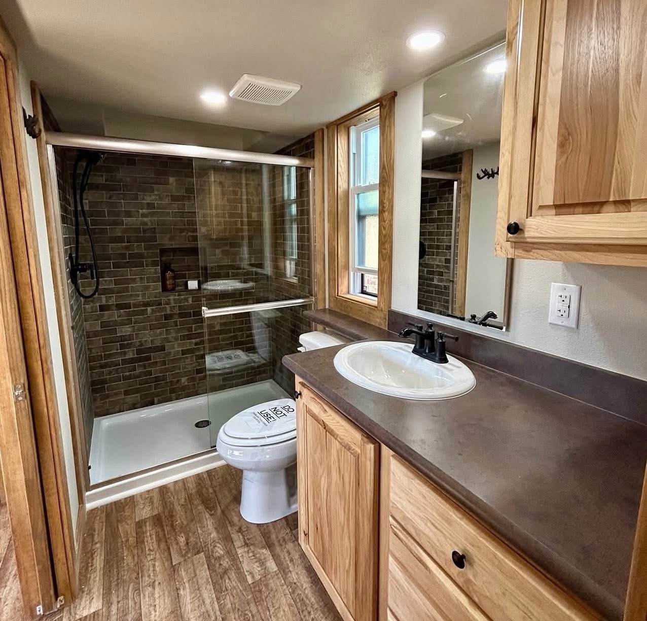 This park model RV is a perfect blend of rustic elegance and modern convenience, built for those who want to downsize without sacrificing style.